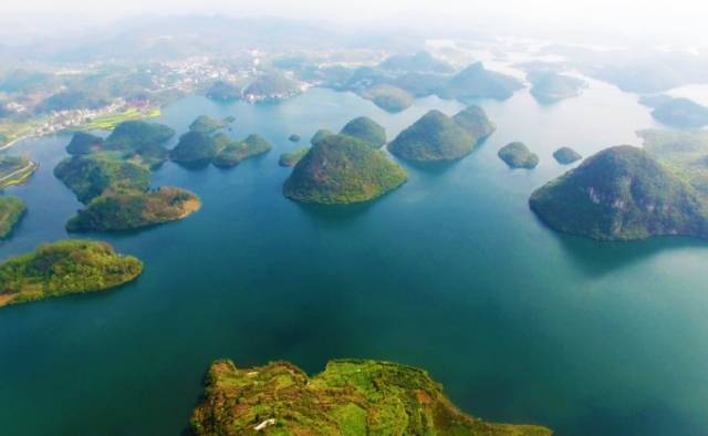 百花湖以中湖、南湖和北湖三个部分组成,湖中大小岛屿 100 多个错落有致,呈现出一派“远山清淡,烟波浩渺,近水碧澄,游船点点”的景象。
